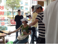 7月25日早上,短视频小组前往"四丫头小粑粑"店,在老板娘的介绍下拍摄了小粑粑的制作过程,对食客们进行采拍。
