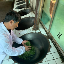 采茶结束后,就到了炒茶环节,第三小组拍摄了资深炒茶师罗世周师傅炒茶的过程,沿袭已久的手工炒茶工艺是贵州茶文化里传承至今的法宝。