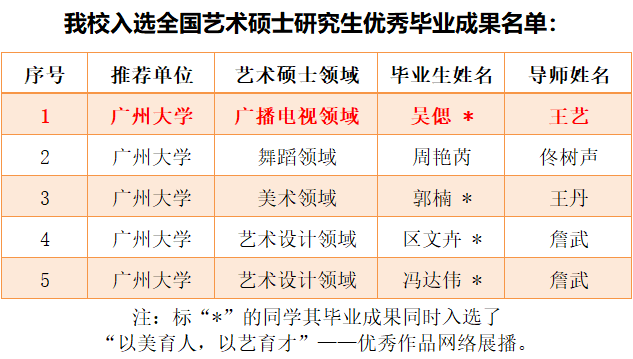 为了更好地提高艺术硕士研究生培养质量,树立艺术硕士专业学位的培养示范标准,全国艺术专业学位研究生教育指导委员会于2019年3月开展了“全国艺术硕士研究生优秀毕业成果”评选工作。我校共5名研究生入选全国艺术硕士研究生优秀毕业成果暨“以美育人,以艺育才——全国艺术硕士培养院校教学成果云展演活动”优秀毕业成果名单,其中我院王艺老师指导的研究生吴偲同学获评广播电视领域“全国艺术硕士研究生优秀毕业成果”奖。