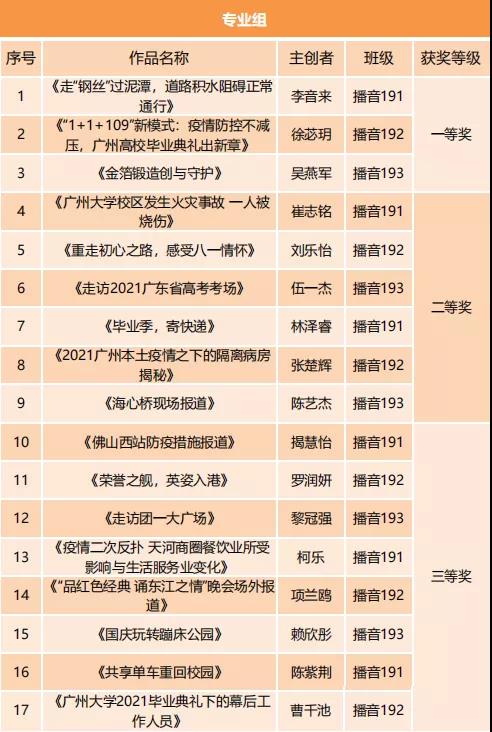 围绕《出镜记者与现场报道》课程的教学要求,评委对提交的作品从选题价值、出镜报道策划、出镜记者的现场报道能力、出镜记者的形象与语言能力、视频拍摄水平及后期制作质量等五个方面进行了综合评分,现将评选结果公布如下。