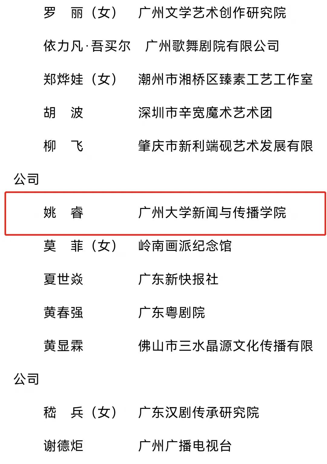 经各省级文艺家协会酝酿推选,省文联党组会议审定,我院姚睿教授与多位青年文艺工作者被评选为为第十二届广东省“新世纪之星”。