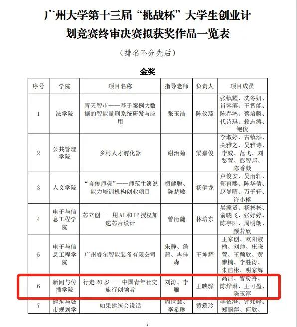 据悉,“行走20岁”项目还在去年年底获得了2021年广东“青创杯”创新创业大赛优胜奖、2021年广东“众创杯”创新创业大赛的优胜奖和2021年“创青春”广东文化旅游创新创业大赛的省级二等奖。