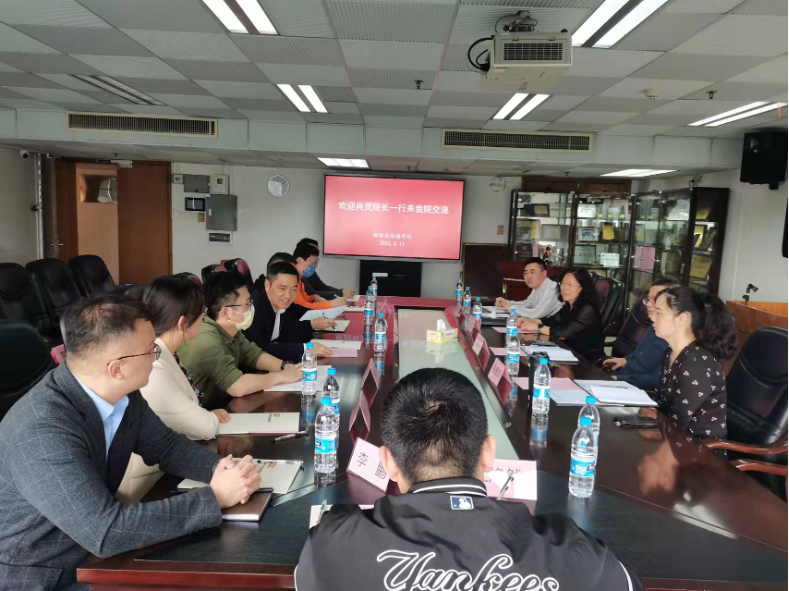 2022年3月11日下午,广州体育学院体育传媒学院院长肖灵、党委副书记苏祥国等一行9人来我院调研交流。我院院长田秋生、党委书记李雁、副院长张爱凤、院办主任付洋出席了交流活动。