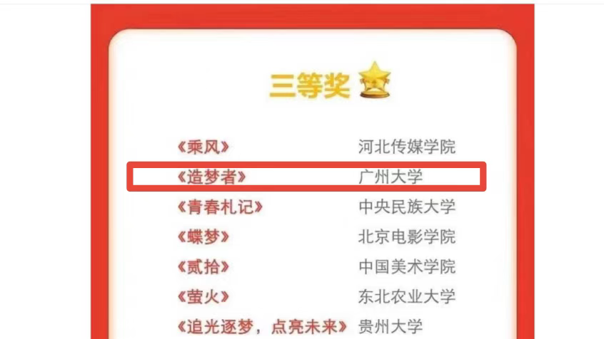 五月四日,中国高校影视学会网络试听专委会与经济参考报社联合开展的“强国有我、不负青春”主题视听作品评选公布获奖结果,其中,由我院曾丽红老师指导,21级广播电视研究生王彦琳主创的纪录片作品《造梦者》在该评选活动中荣获三等奖。